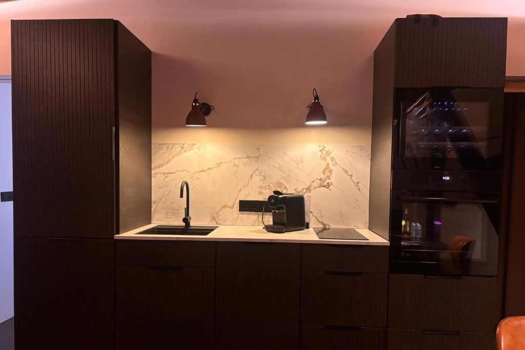 The house is ideal for two guests, offering an intimate and relaxing setting, but comfortably accommodates up to four with a sofa bed in the open-plan living area. Please note that this space does not have blackout curtains, meaning bright summer nights – but sleep masks are provided for your comfort. The house offers Wi-Fi and a fully equipped kitchen with a refrigerator, stovetop, wine cooler, oven, and dishwasher.